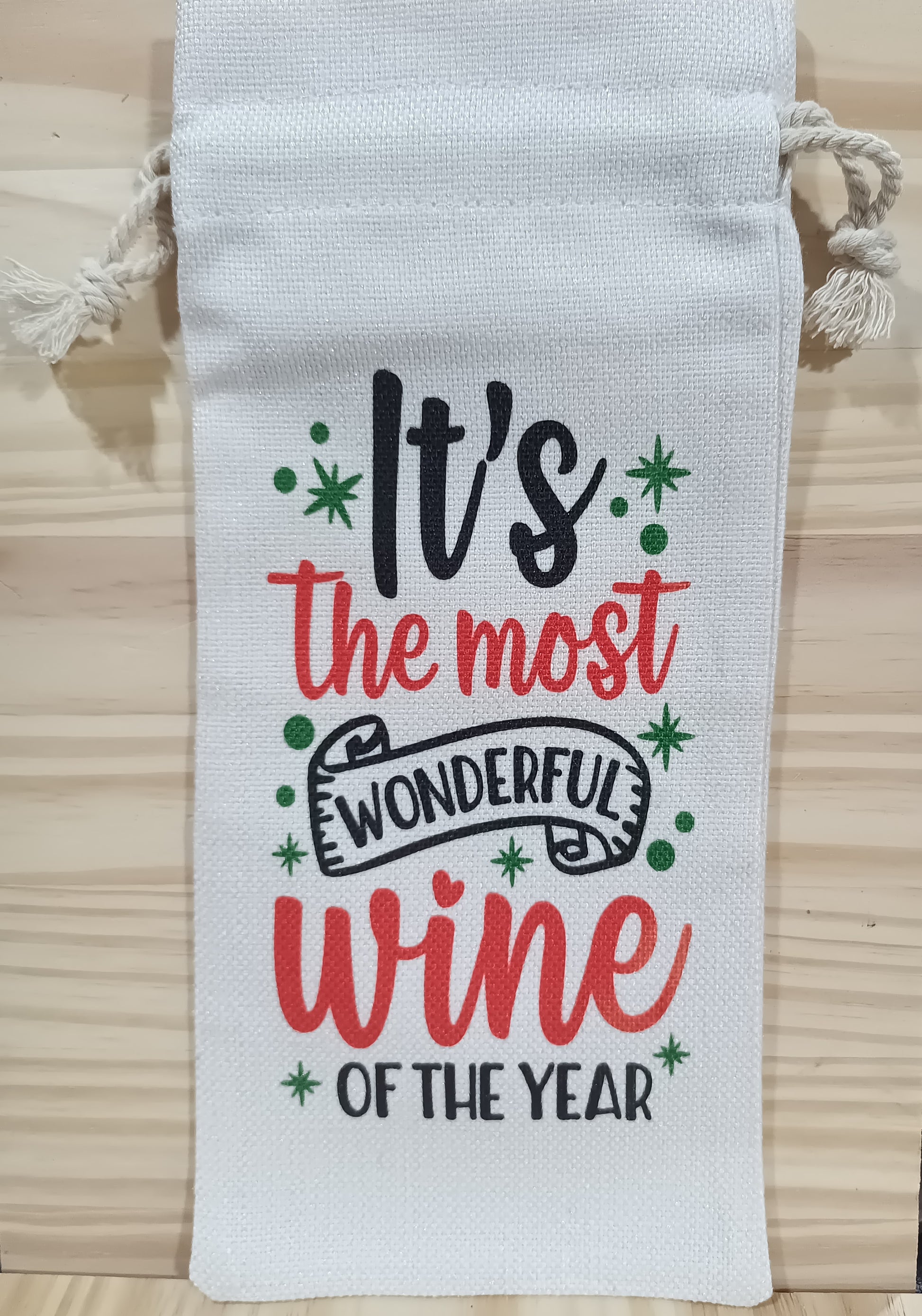 "It's the most wonderful wine of the year" wine bag with drawstring closure